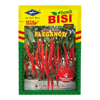 - Buah besar dengan panjang 14 – 15 cm, diameter 1,5 – 1,8 cm, warna buah muda hijau dan menjadi merah cerah saat tua.