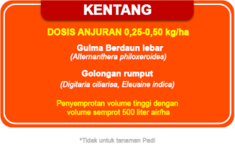 Adalah herbisida sistemik selektif pra dan purna tumbuh berbentuk tepung yang dapat disuspensikan, digunakan untuk mengendalikan gulma pada tanaman kentang.