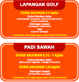 Adalah herbisida pra tumbuh berbentuk tepung yang dapat disuspensikan, digunakan untuk mengendalikan gulma padang rumput golf dan pertanaman padi sawah.