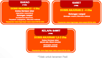 Adalah herbisida sistemik purna tumbuh berbentuk larutan dalam air, digunakan untuk mengendalikan gulma pada pertanaman kakao (TBM), karet (TBM), dan kelapa sawit (TBM).