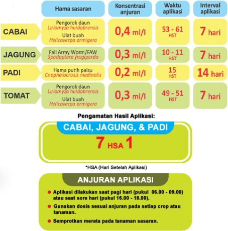 Adalah insektisida racun kontak, lambung, dan penghambat pertumbuhan serangga berbentuk pekatan suspensi, digunakan untuk mengendalikan hama pada tanaman cabai, jagung, padi, dan tomat.