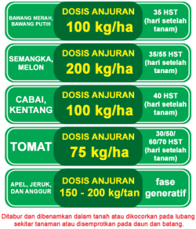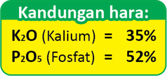 Merupakan pupuk majemuk dengan unsur hara Kalium dan Fosfat yang digunakan untuk tanaman, sayuran, palawija, dan buah-buahan.