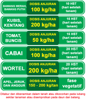 Merupakan pupuk majemuk dengan unsur hara Nitrogen dan Fosfat yang digunakan untuk tanaman sayuran dan buah-buahan.