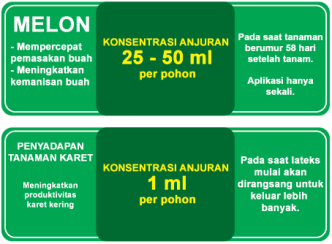 Merupakan zat pengatur tumbuh tanaman berbentuk larutan dalam air, digunakan untuk mempercepat pemasakan, meningkatkan kemanisan buah melon, dan meningkatkan produktivitas karet kering.